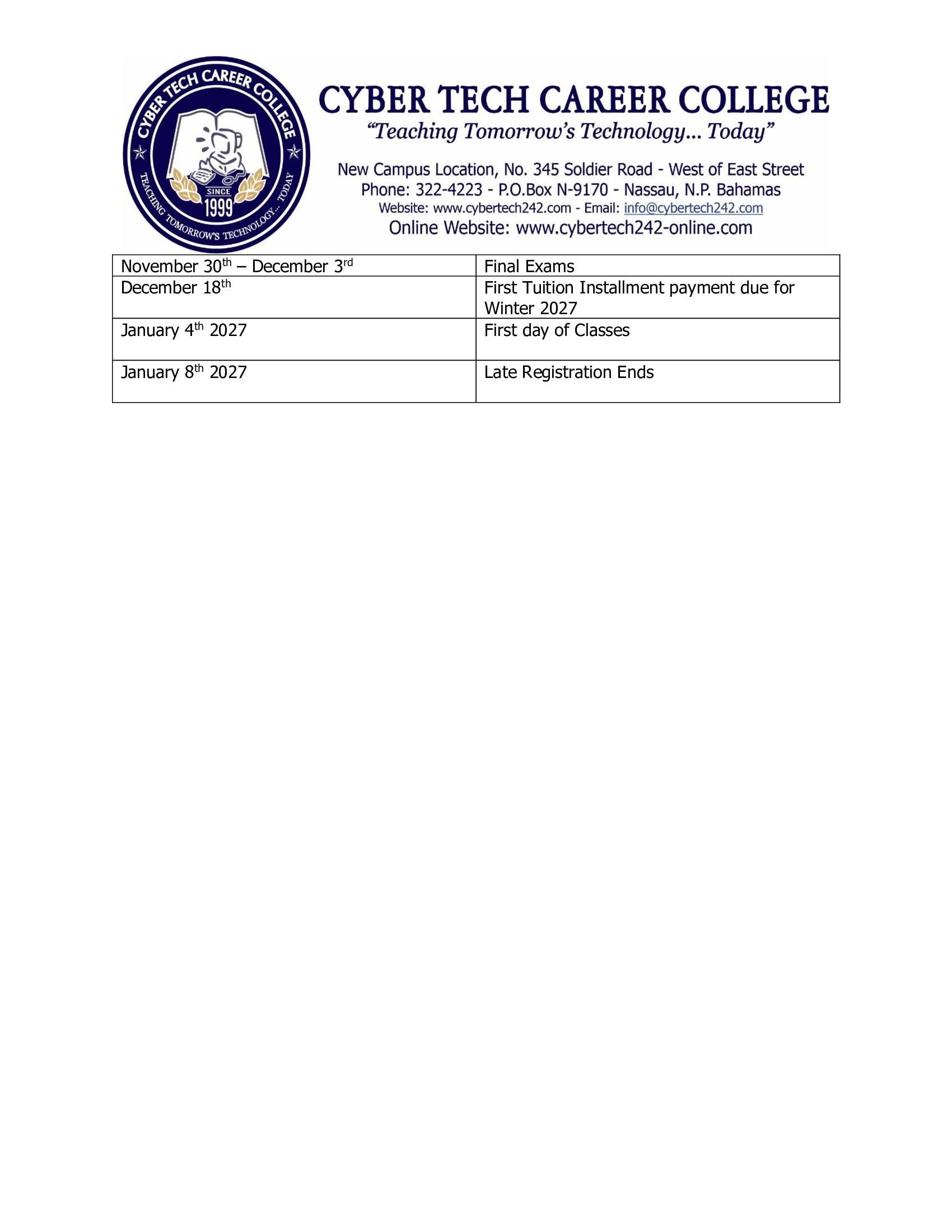 Copyright 2024. Cyber Tech Career College. All Rights Reserved